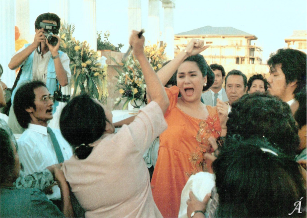 11011This may also have been a consequence of iconicity, a higher realm than stardom: people become aptly reverential, sometimes to a fault. One of the unforgettable anecdotes about Linda on the set of Sisa was of de Leon adjusting her delivery by saying, “Anita, konting libog pa [more libido please].” Cineastes may have delighted in this narrative by imagining how much greater the director was than his performer, but Linda’s output throughout and beyond the Marcos regime (regarded as the Second Golden Age of Philippine cinema) belies this auteur-snobbish interpretation. Scroll through the tribute excerpts posted by, as an example, Facebook’s Cristina Gaston (a pseudonym adopted from an Alma Moreno character): Ishmael Bernal, Maryo J. de los Reyes, Elwood Perez, and Joey Gosiengfiao were never content to just depict her as mother to the star(s) of their projects. She had to be kooky, eccentric, decadent, flighty, bitchy, alcoholic, unfaithful, and/or ambitious.