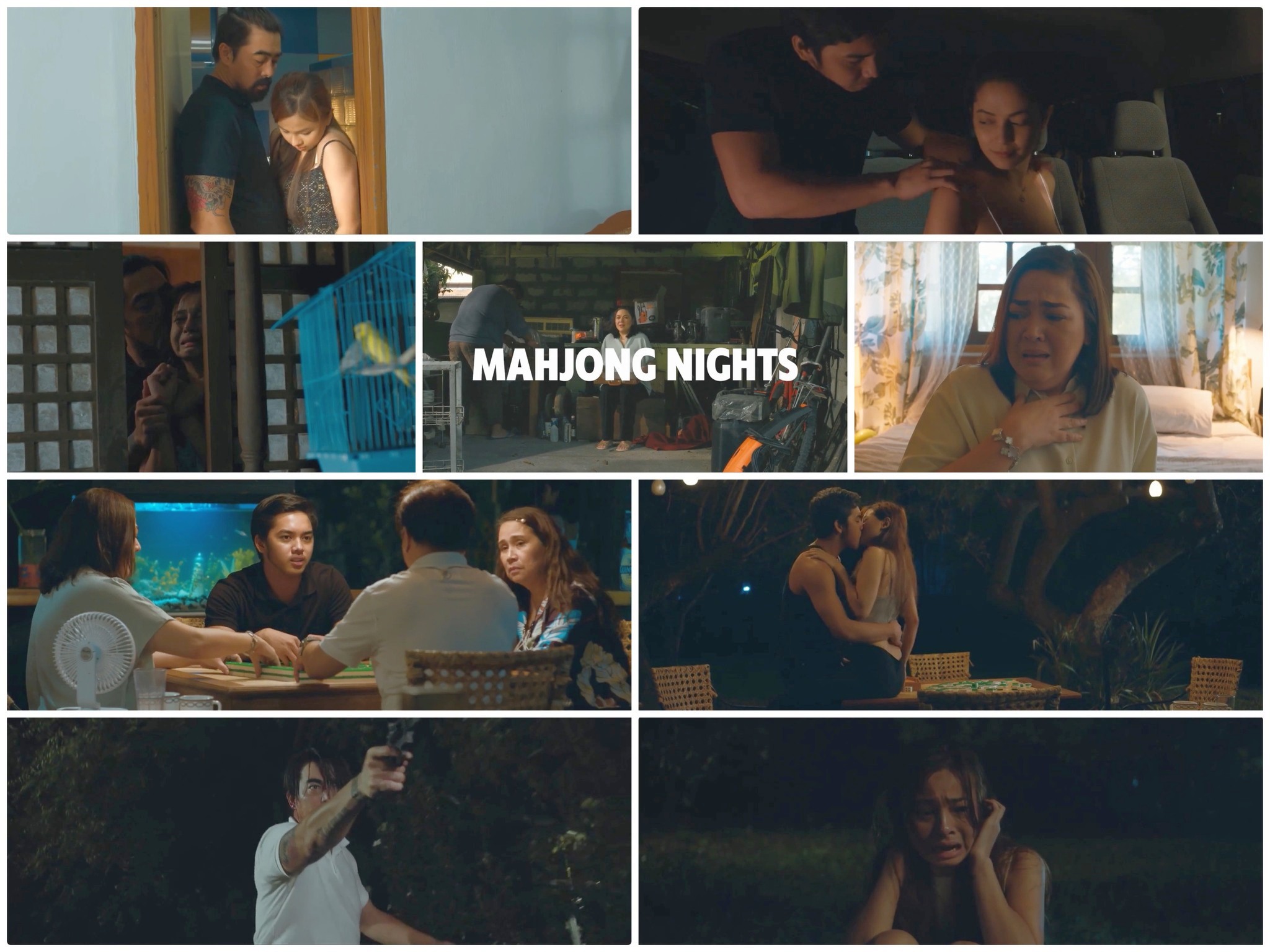 Stylized and visually arresting, Lawrence Fajardo’s Mahjong Nights (Viva Films, 2021) complicates and perverts the simplest of interactions. It unfolds at a languorous pace, ultimately leaving viewers with a haunted feeling, an uneasy sense of always having something to worry about, some constraint on expression or behavior. The perversion of natural impulse begins with Angeli Khang, whose achievement ultimately comes from how she renders Alexa. We’ve all seen the film where an actor chooses to dramatize the relationship between a performative character and the role they’ve taken on by underlining skill and barely contained nerves. Khang avoids this route entirely and instead shows us a performer with an intuitive, bodily understanding of who she’s playing. When we first see Alexa we don’t get the sense of a technically immaculate interpreter but of an instinctive, in-the-moment performer committed to the goal she’s been given. In the rare moments she looks distracted, we get the sense of a performer stuck in her own head. We never forget the stakes that inform her ever-evolving crisis, yet Khang communicates all of this cleanly and dexterously. Jay Manalo’s Leo is stern and forbidding, rarely letting the cold mask drop. Fajardo’s cast (which also features Mickey Ferriols as Leo’s wife Esther) is exceptional and Tad Tadioan gives an impassioned performance as Big Boy. Like Fajardo’s other films, Mahjong Nights grows out of a tension between essence and form – between a person’s emotions and the role he or she must play.